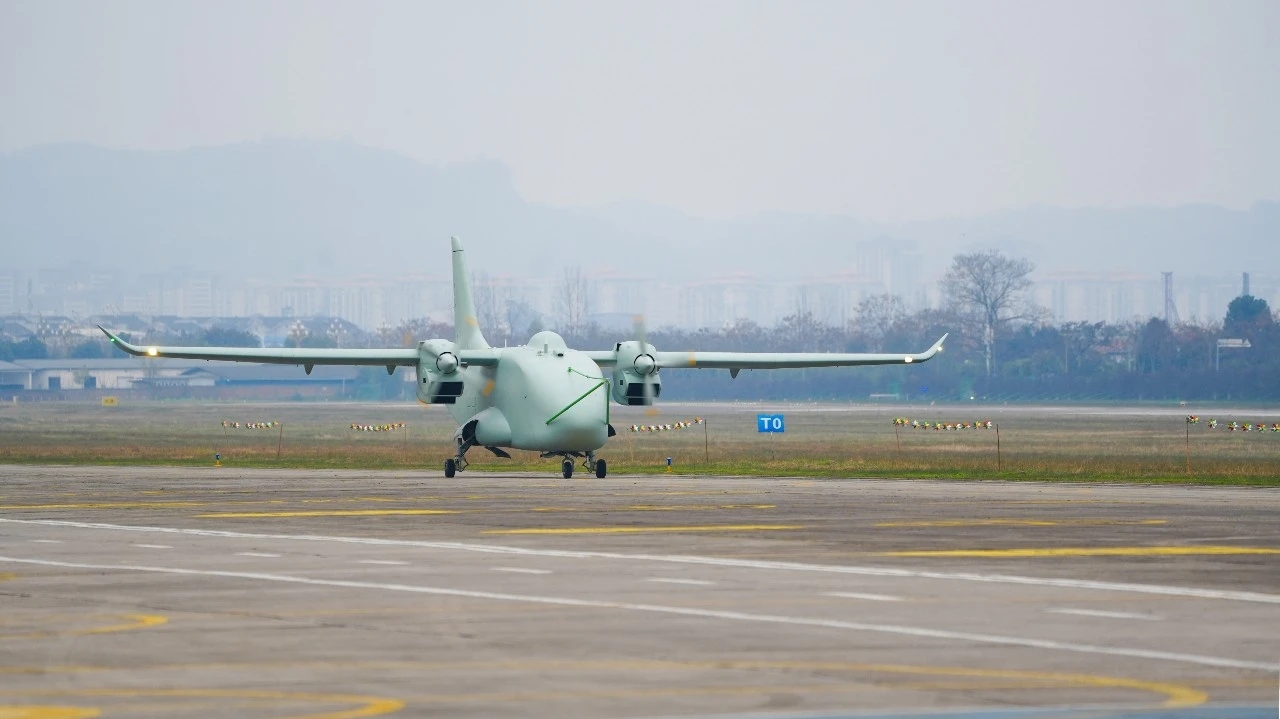 2月1日,彩虹YH-1000S无人运输机在梁平机场完成首次试飞。(高柔 摄)