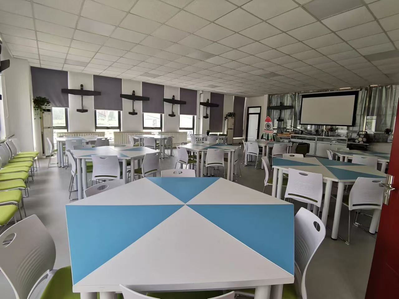 紧邻科学家精神文化走廊的是多媒体教室。目前,科普基地共有5个风格不同的教室,可供400人同时开展科普活动。每个教室风格迥异,可以满足不同人群和课程内容需求。