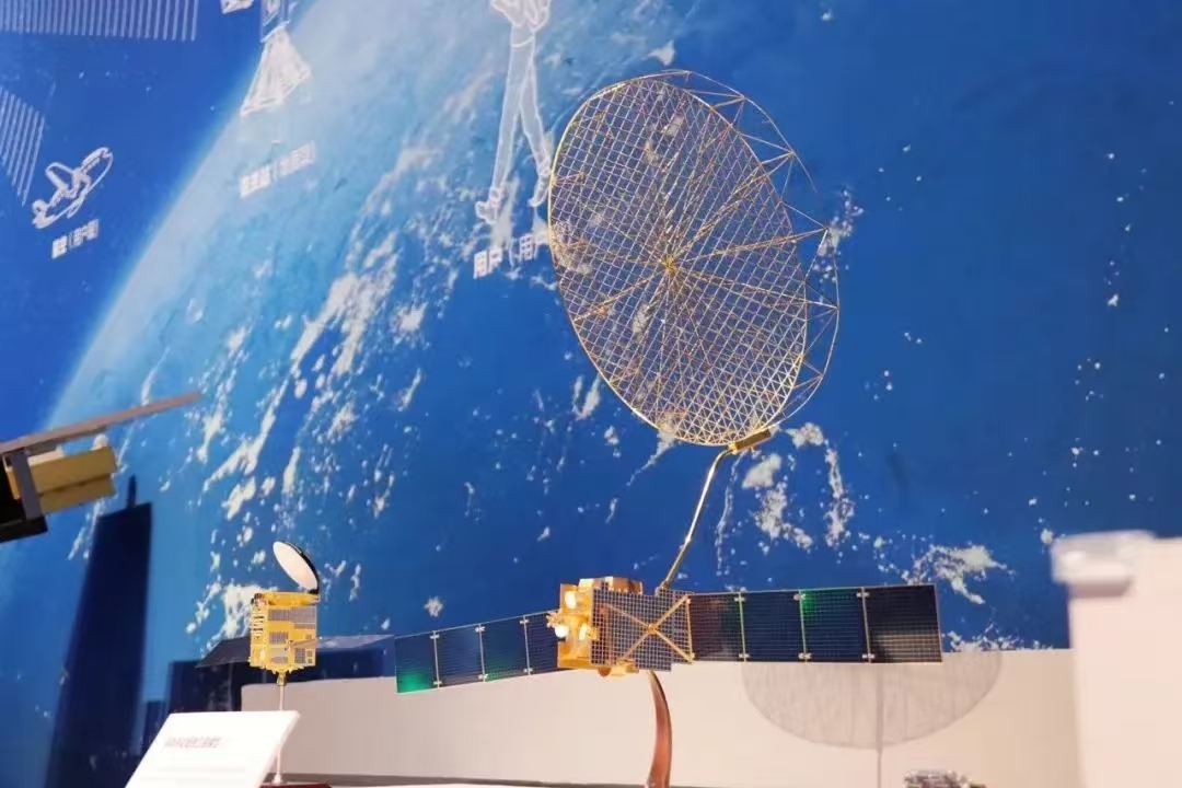 ▲ 2025年在中国国家博物馆举办的“网络发展新图景成就展”上展出的高轨移动通信卫星等卫星模型